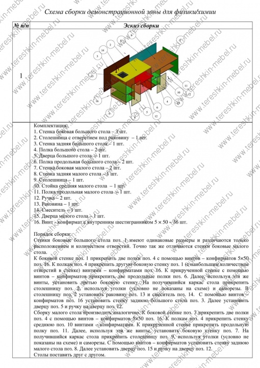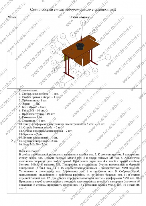 5. Схема сборки стола лабораторного с сантехникой