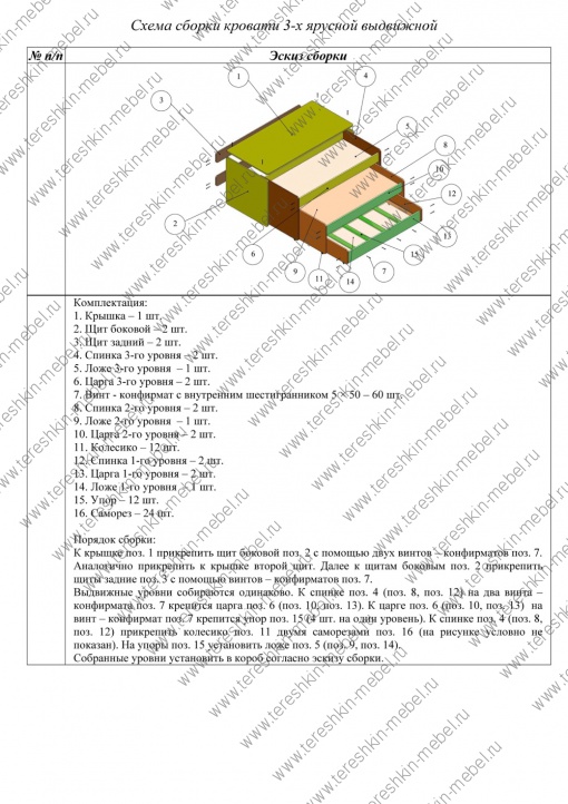 6. Схема сборки кровати 3-х ярусной выдвижной