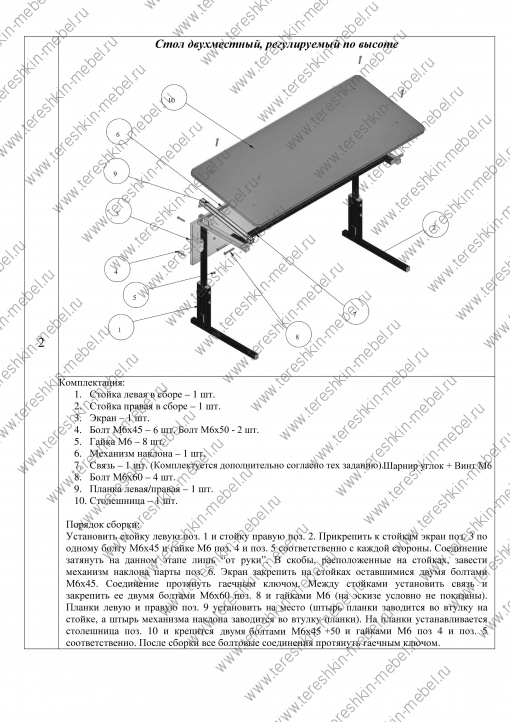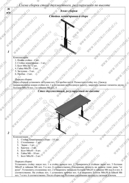 2. Схема сборки стола двухместного, регулируемого по высоте