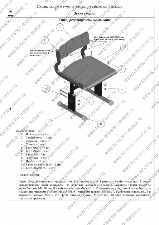 4. Схема сборки стула ученического регулируемого по высоте №2-4 №3-5 №4-6