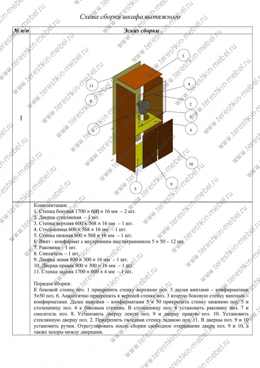 9. Схема сборки шкафа вытяжного
